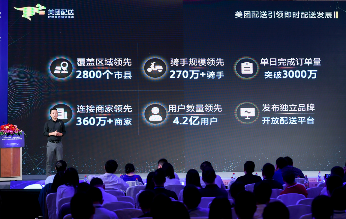 (圖說:美團(tuán)配送總經(jīng)理魏巍在第十屆電子商務(wù)物流大會現(xiàn)場發(fā)表主旨演講)