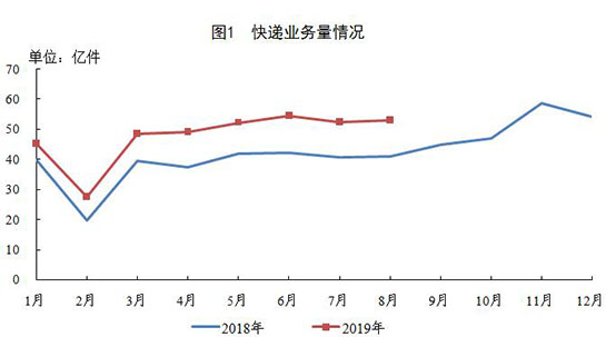 8月份,全國(guó)快遞服務(wù)企業(yè)業(yè)務(wù)量完成53億件,同比增長(zhǎng)29.3%;業(yè)務(wù)收入完成616.8億元,同比增長(zhǎng)26.2%。