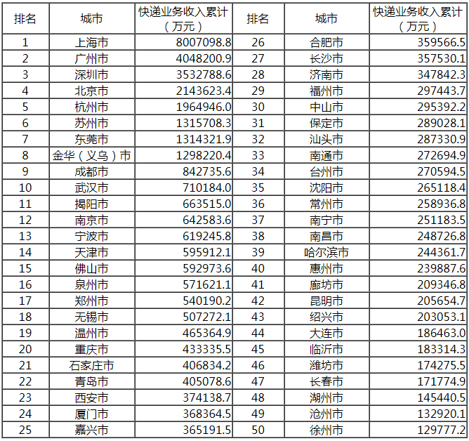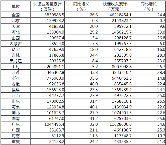 分省快遞服務(wù)企業(yè)業(yè)務(wù)量和業(yè)務(wù)收入情況表