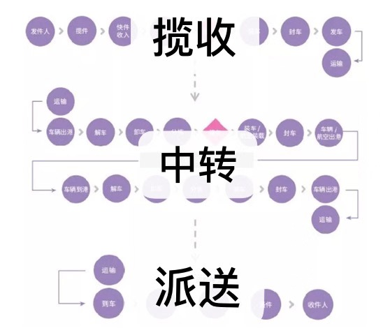 我相信大部分人對于這類圖片一定都很熟悉,“分撥中心”、“轉運中心”、“集散中心”等等,這些詞其實都是一個意思,轉運中心。
