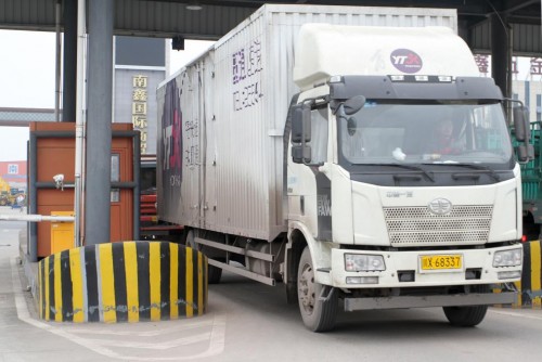 圓通快遞大貨車駛出傳化公路港