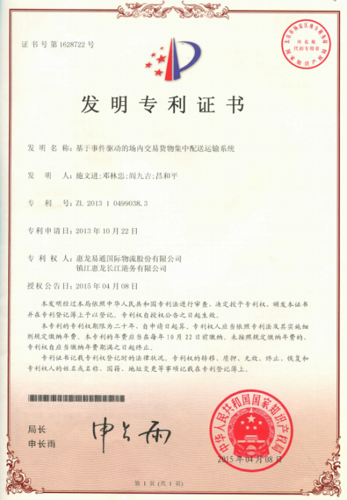 2013年,在交通運輸部、財政部、江蘇省政府等相關部門的創新支持下,惠龍易通開始無車無船貨運在線交易,網絡貨運整個流程的模式捆綁技術取得了多項發明專利。