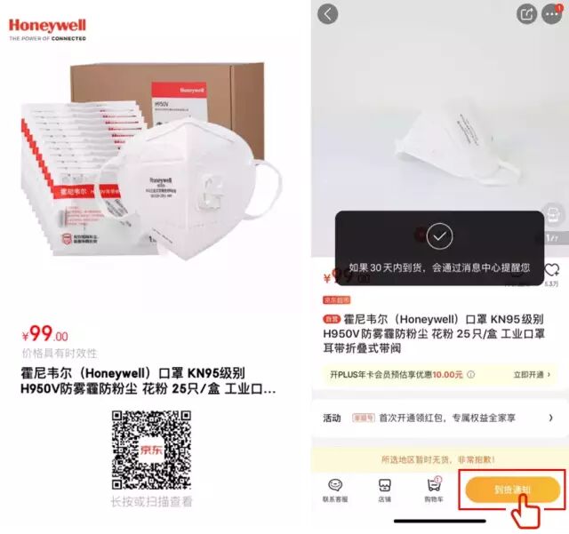 由于近期大家對N95及KN95級別口罩的關注度持續上漲,霍尼韋爾KN95級別的防護口罩在京東和天貓兩個官方購買平臺產品也供不應求。對此,我們就當前口罩供應情況作如下聲明: