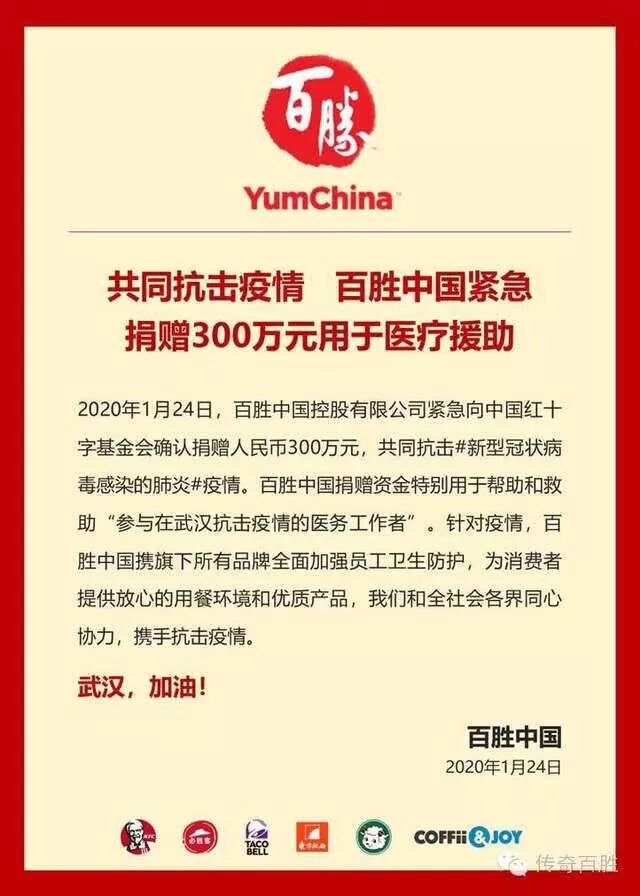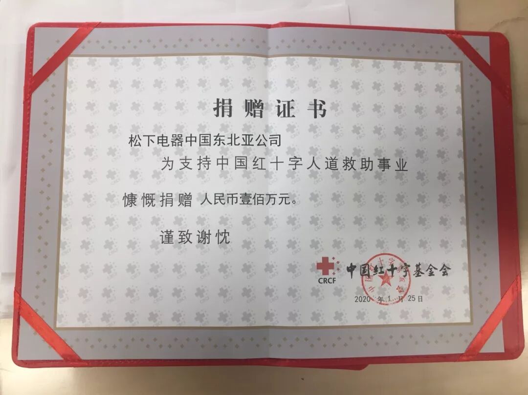 為全力援助武漢抗擊新型冠狀病毒感染的肺炎疫情,2020年1月25日,松下電器中國東北亞公司緊急向中國紅十字基金會確認捐贈100萬元人民幣,用于購買醫用口罩、防護服、護目鏡等防疫物資。