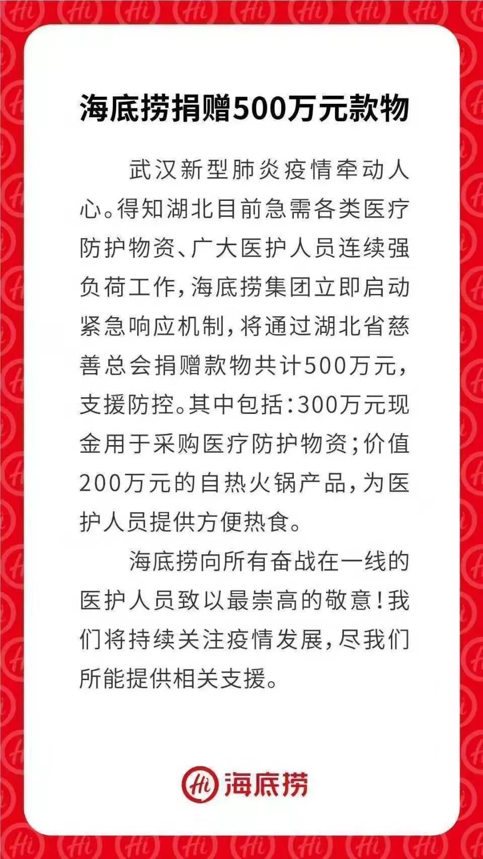 萬周電:萬科公益基金會決定向武漢紅十字會捐贈1億元人民幣,幫助武漢抗擊新型肺炎疫情。捐贈主要用于武漢疫區前線抗擊及防治工作,包括藥品、醫療用品、口罩、防護服、消毒液、護目鏡等急需物資的采購,以及對一線醫護人員的幫助和激勵。