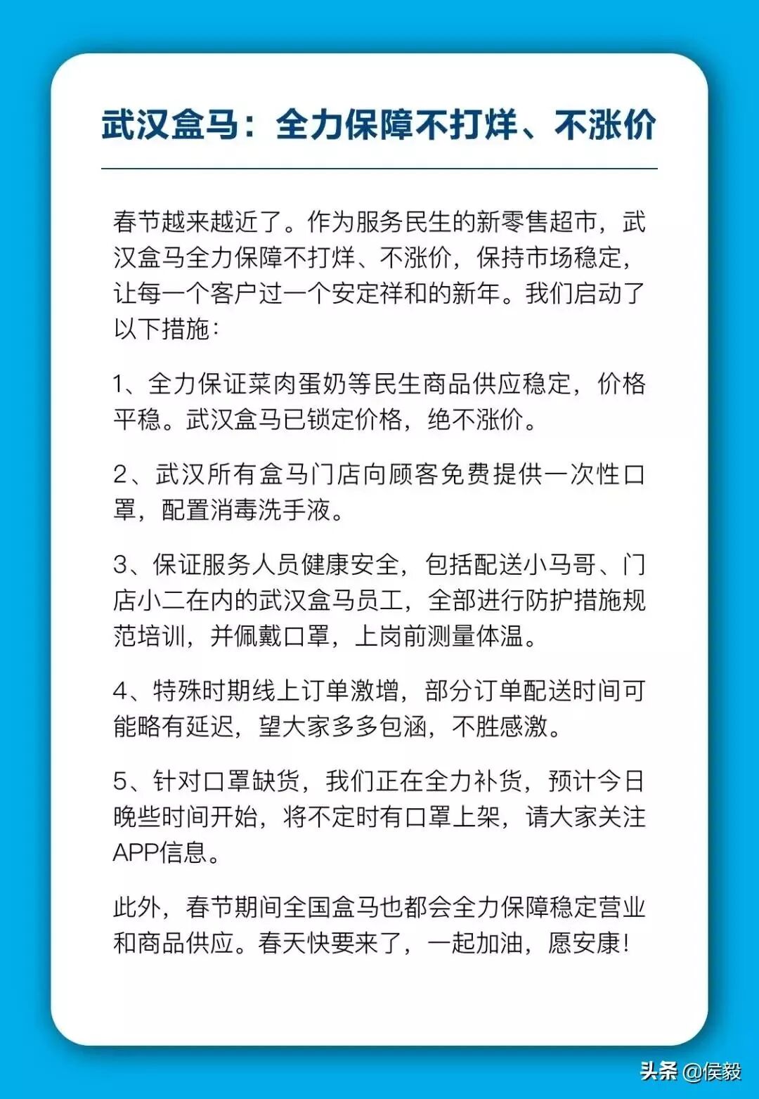 我們的使命是“讓老百姓生活更簡單”,我們的愿景之一是“讓天下的餐廳沒有難做的生意”,我們更要讓大武漢的市民們安心抗擊疫情,為他們提供放心食材!