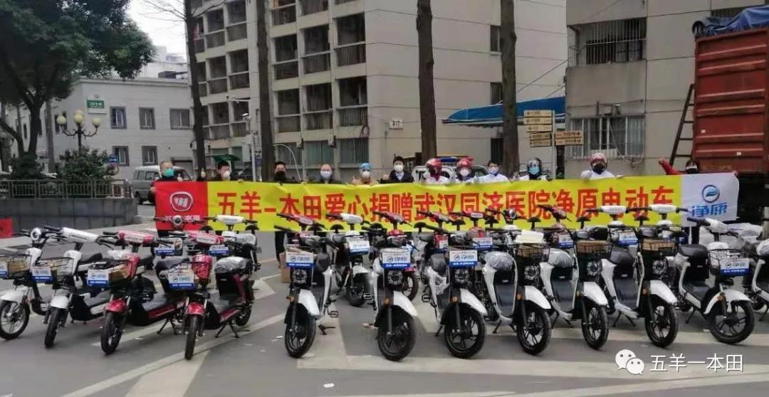 五羊-本田積極行動,于2020年02月02日,向武漢協和、武漢同濟兩家定點接收醫院捐贈電動自行車一批,為戰斗在武漢疫情防控一線的醫護人員高效解決短途交通出行問題,針對性提升醫院工作效率。