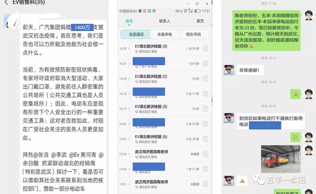 在收到武漢協和醫院、同濟醫院的電動自行車需求數量后,五羊-本田摩托(廣州)有限公司迅速聯合物流合作單位:富田-日捆儲運(廣州)有限公司、廣東佳實達物流有限公司,展開捐贈工作的探討和對應。