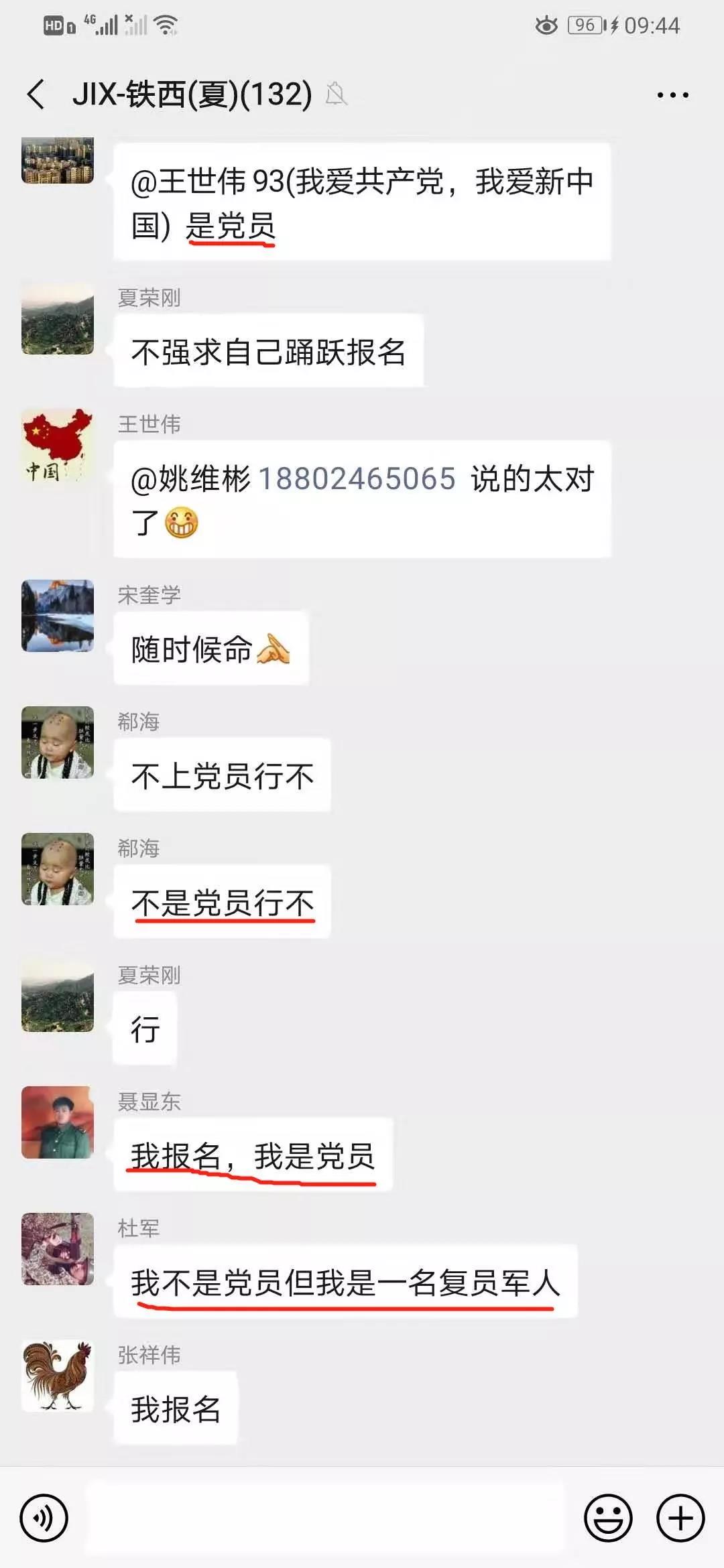 “我是黨員,我報名”、“我不是黨員,但我是復(fù)員軍人”、“不是黨員就不能去么”、“武漢支援我必須去”…………