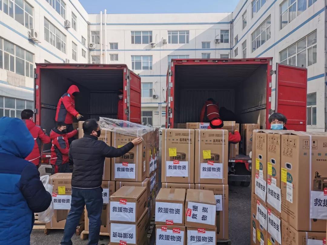 100臺制氧機被裝運上京東物流車