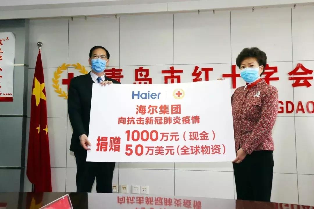捐助1000萬元現金和價值50萬美元來自全球各地海爾人捐贈的醫療防疫物資。