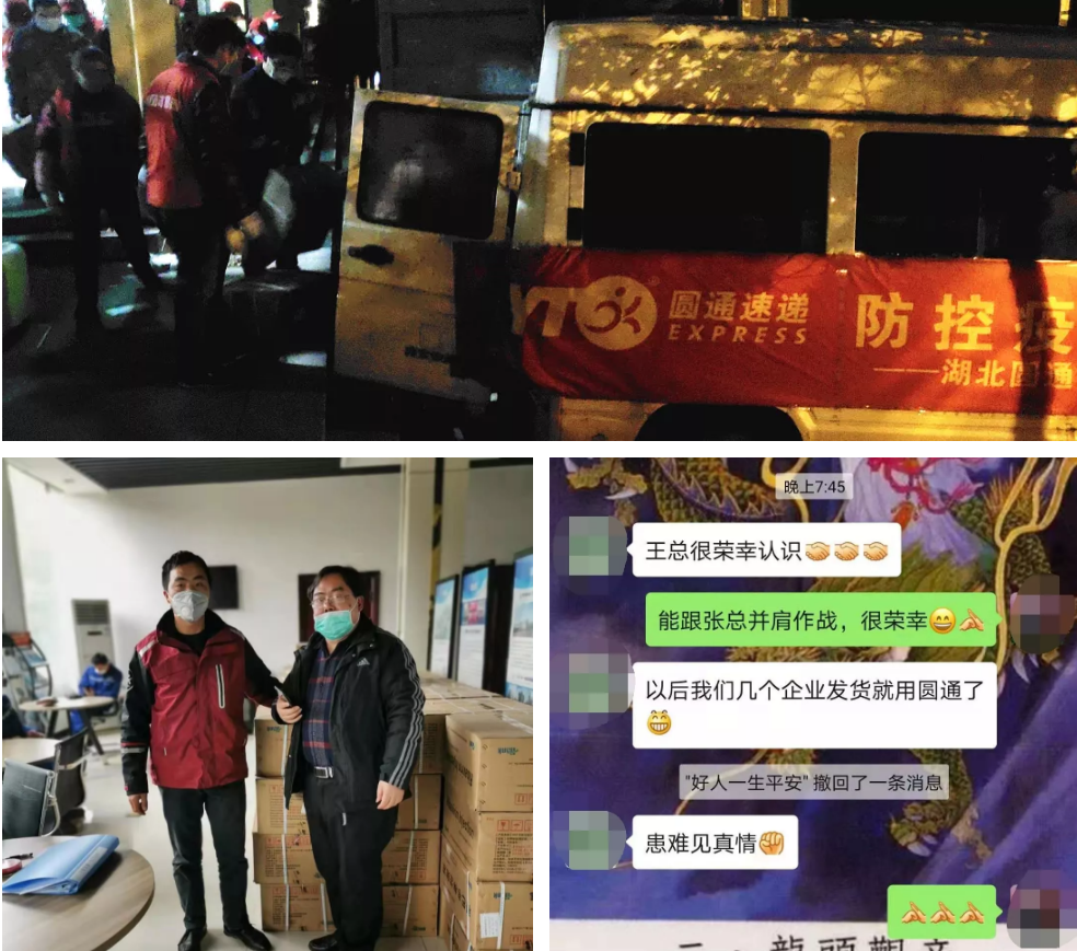 1月28日,圓通杭州當地分公司接到杭州童夢樓扶貧公益服務中心發來的湖北省內寄遞物資的請求。他們向總部匯報后,總部安排湖北當地分公司連夜攬收3.7萬個口罩,并第一時間送往武漢及黃石的對口醫院。此外,這家公司還承接了從廣東運往杭州醫療物資派送。