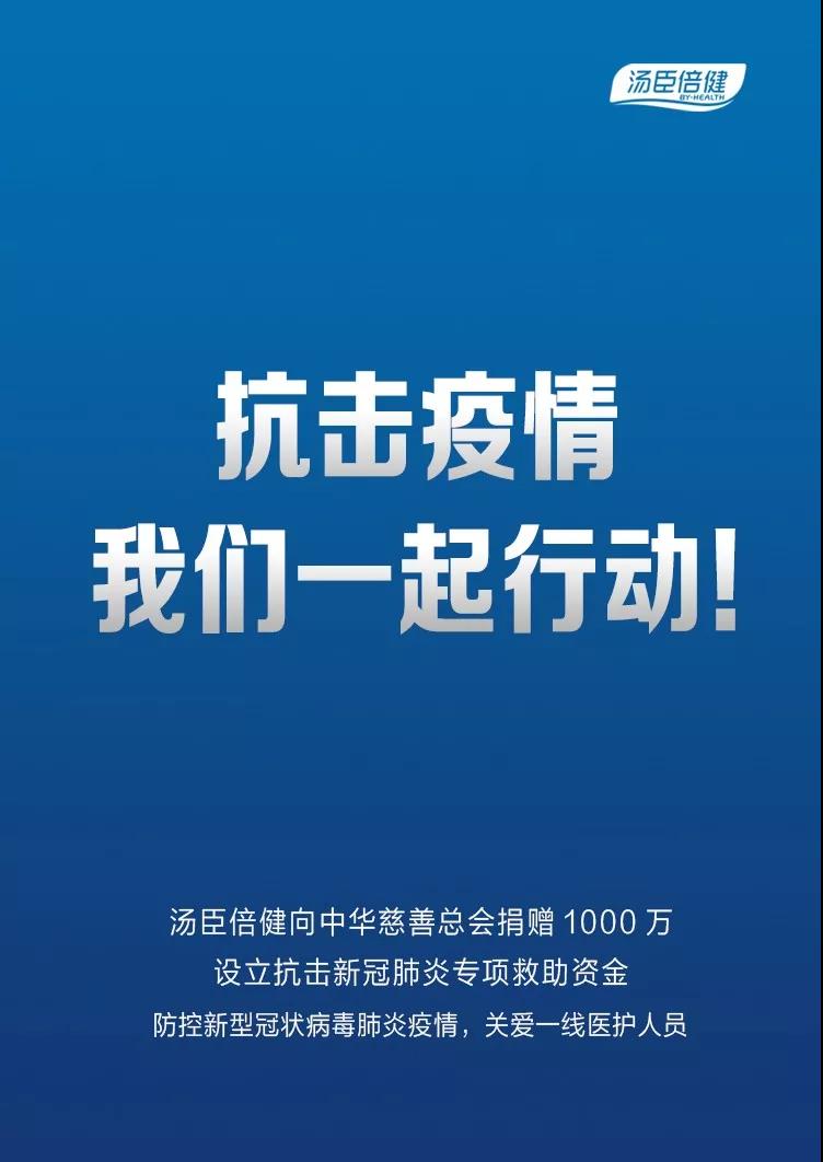 1月27日,湯臣倍健股份有限公司通過中華慈善總會捐款1000萬元,在其機構內下設“抗擊新冠肺炎專項救助資金”,用于抗擊新冠肺炎疫情一線醫護人員的救助和獎勵以及醫療防護物資采購。