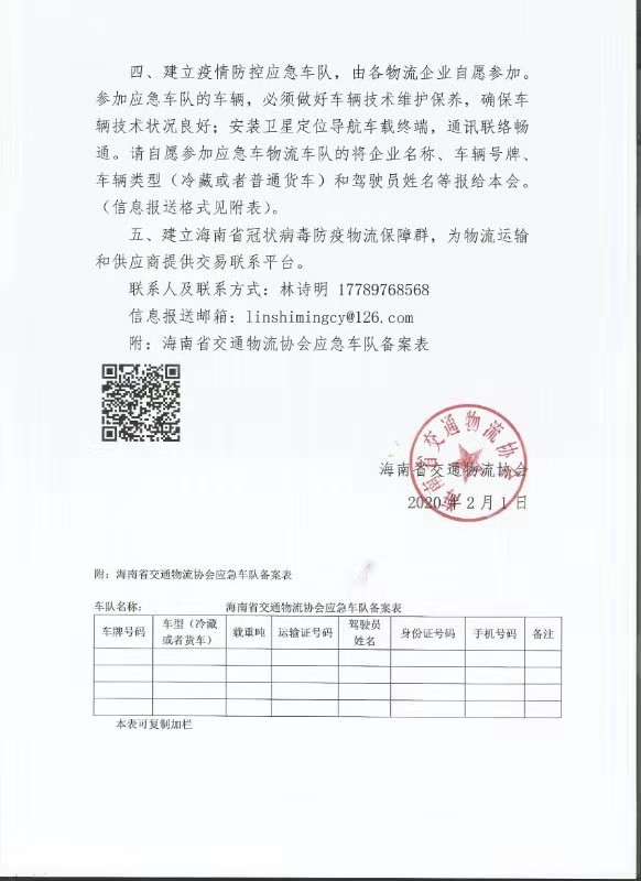 海南省交通物流協會關于做好新型冠狀病毒防控物流保障工作的通知
