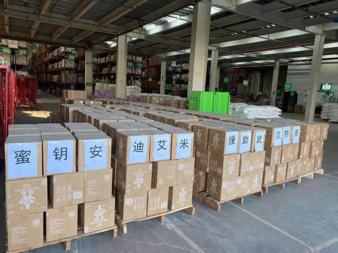 還有,一則信息:由山西石剛董事長創辦的安迪艾米國際貿易有限公司、蜜鑰生物科技有限公司共同捐贈女性安睡褲1000箱,消毒液200箱,成人紙尿褲200箱,代餐奶昔100箱,用于醫生護士工作穿戴使用,特別是女性醫生護士。