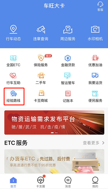 司機在車旺大卡APP首頁就可以看到經驗路線推薦功能。選擇自己名下的車輛,輸入起點和終點,就可以獲得個性化的經驗路線推薦。不過根據防疫工作的需要,相關道路均存在采取臨時性管控措施的可能性。因此司機根據車旺大卡推薦的經驗路線行駛時,也需要關注實時路況,并配合防疫工作的需要選擇合適的路線。
