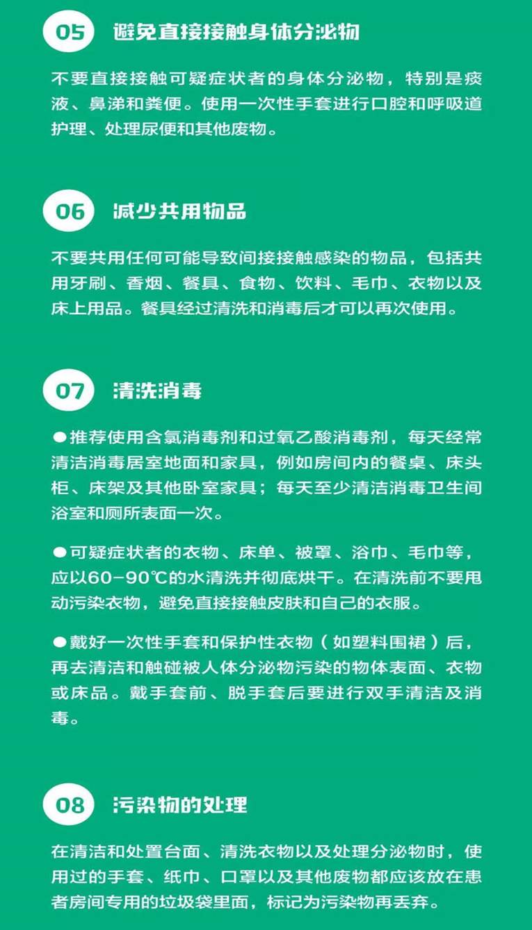 8)主動做好個人及家人的健康監測,如自覺發熱要及時測量體溫。如家里還有小孩的,要早晚摸頭,如感覺發熱,要為其量體溫。