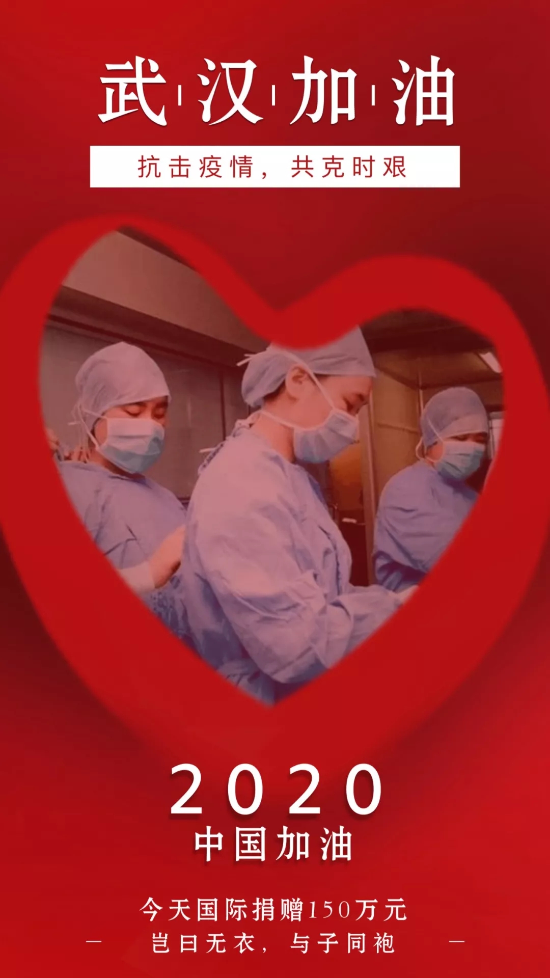 疫情面前,人人都是行動者,這是一場全民的戰斗。疫情無情,人間有愛,今天國際義不容辭,希望能為抗擊疫情盡一份綿薄之力,眾志成城,共克時艱!我們堅信,在黨和國家的堅強領導下,眾志成城,用愛與勇氣直面困難,一定能打贏這場疫情防控狙擊戰!