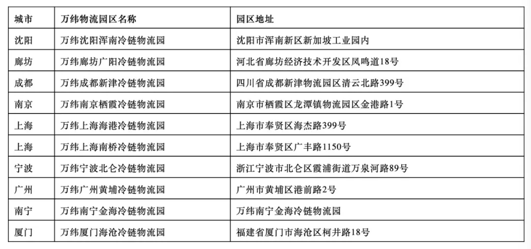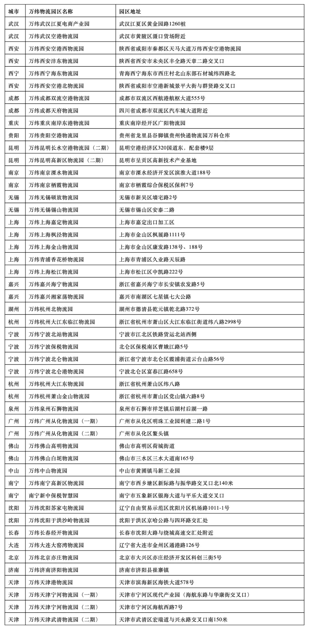 以下為萬緯物流為抗疫應急無償開放的全國物流園清單,請致電400-056-5656咨詢詳情。