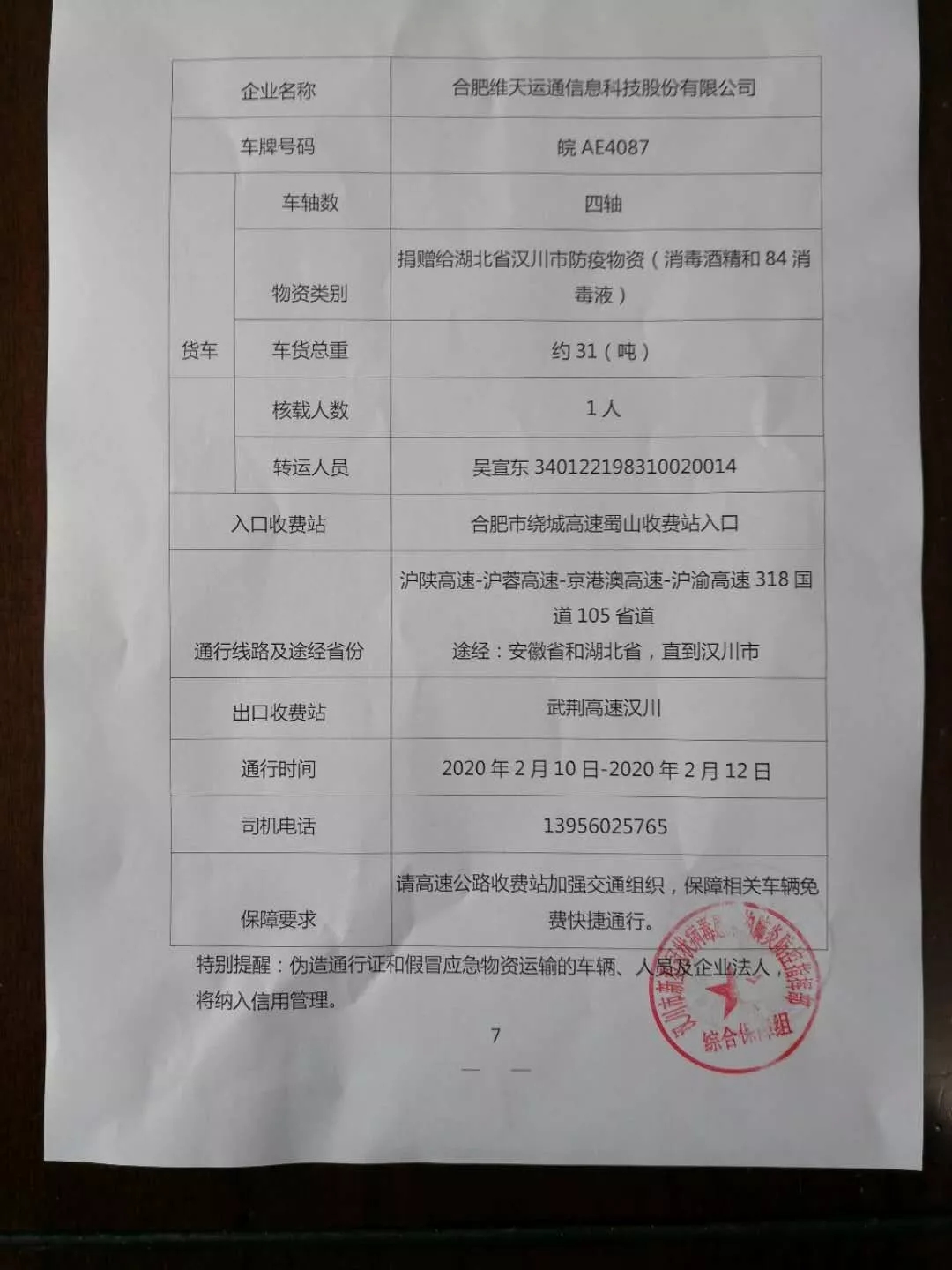 運(yùn)輸車輛就近從速調(diào)配,緊急馳援湖北省,發(fā)送至湖北省漢川市新冠肺炎防控指揮部刁東倉(cāng)庫(kù),主要用于漢川市抗擊新型冠狀病毒感染肺炎。