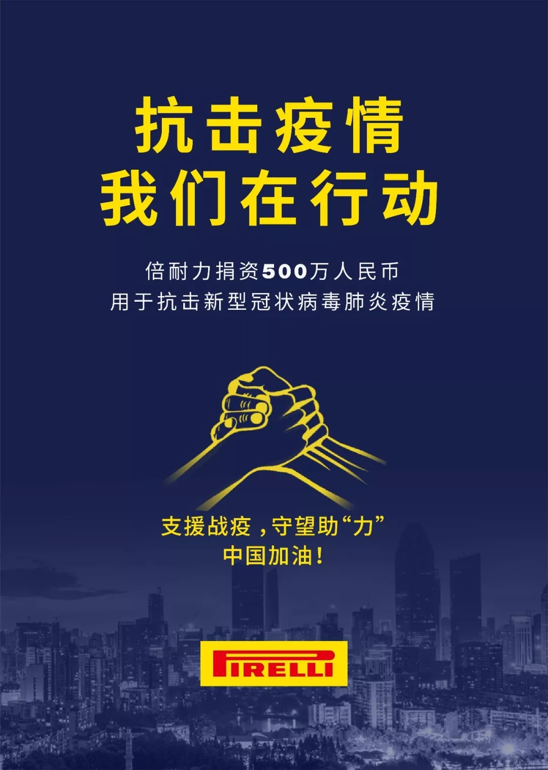 新型冠狀病毒肺炎疫情爆發(fā),牽動(dòng)著全世界的目光和全中國人民的心弦,此時(shí)此刻,疫情就是命令,防控重在行動(dòng)!昨日,倍耐力捐資500萬人民幣用于支援抗擊新型冠狀病毒肺炎疫情。