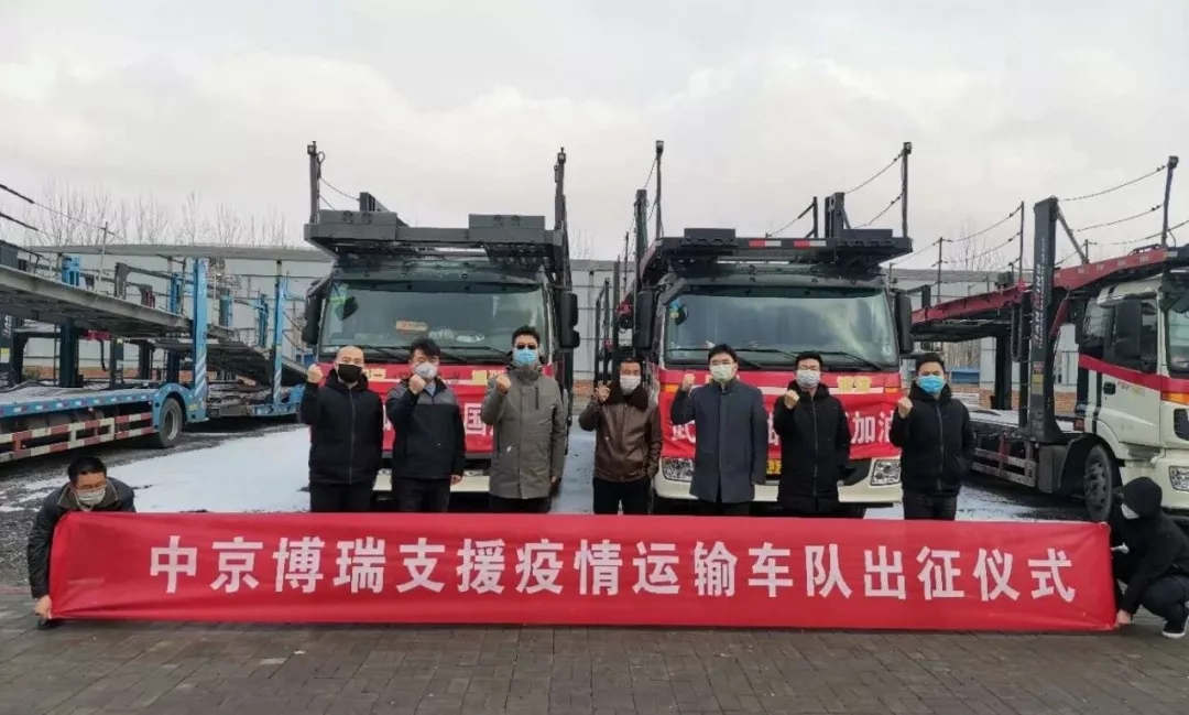 北汽集團(tuán)通過中華慈善總會向湖北、浙江、北京、廣東、湖南等地捐贈了24輛北汽EV5作為防疫物資全封閉運(yùn)輸車,中京博瑞承擔(dān)14輛車的運(yùn)輸任務(wù)。