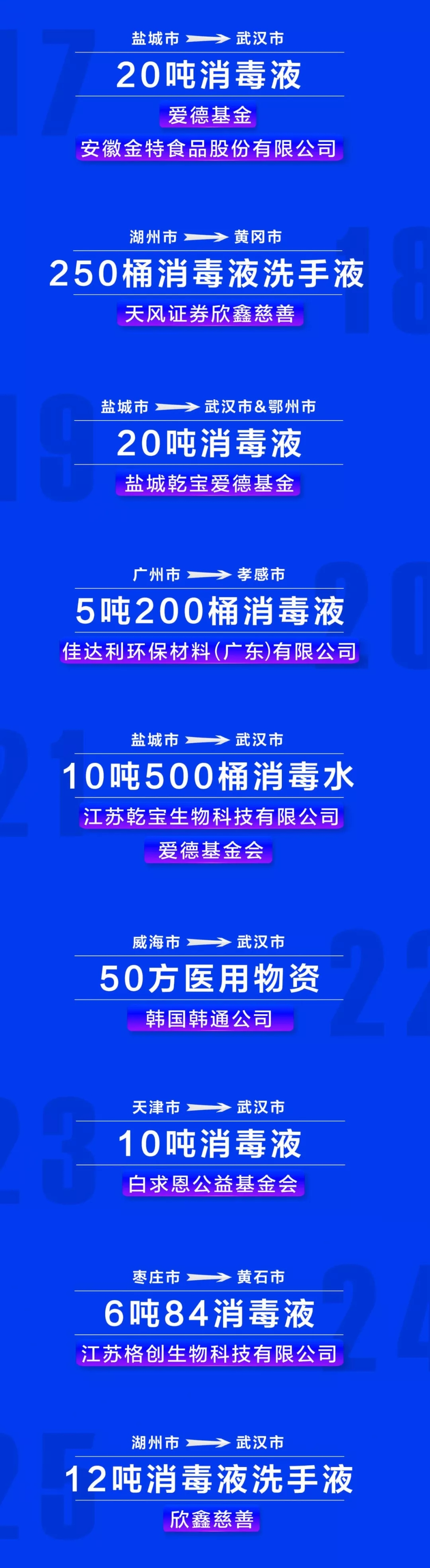 江蘇乾寶生物科技、恒林家居、亞新集團、青島海氏海諾、廣東佳達利等企業也紛紛獻出愛心。