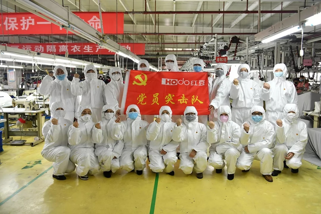 “為黨為國為人民,紅豆要爭分奪秒”。疫情防控期間,堅持黨建引領,凝聚強大力量,紅豆股份匯集起了一股抗疫戰線上的“紅色力量”,有擔當、肯擔當、真擔當,火力全開保質保量生產防護服。防護服項目成立以來,公司實際控制人之一、紅豆集團黨委書記、董事局主席兼CEO周海江每晚在現場親自“督戰”。2月7日晚周海江提出新目標時強調:“紅豆一定不辜負期望,為黨為國為人民,紅豆要爭分奪秒,希望通過3天3夜奮戰,力爭日產能再擴大2倍,全力助力打贏疫情防控攻堅戰。”