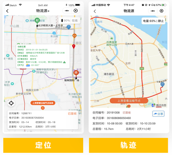 在物流實操環節,只需將物流源電子回單隨貨發出,企業客服就可通過物流源微信公眾號、微信小程序、電腦后臺隨時查詢貨物在途實時位置、全程軌跡、運輸動態(時速、剩余里程)、簽收信息等,并可直接微信分享給相關客戶。