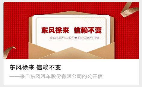 元宵節剛過,各地的返工潮也陸續到來,而身在湖北疫區的東風人卻還在齊心戰“疫”。在這個特殊的時期里,近日,東風汽車股份有限公司(以下簡稱:東風汽車股份)以總經理陳彬和黨委書記郭濤名義對外發出的一封題為《東風徐來 信賴不變》的公開信,突然刷爆了大家的朋友圈。這封發給廣大客戶、經銷商伙伴、供應商、行業兄弟企業和媒體的公開信,既表明了同舟共濟,支持客戶朋友、經銷商伙伴的態度和承諾,同時也正式吹響了東風輕型車人全員“戰役”的號角。