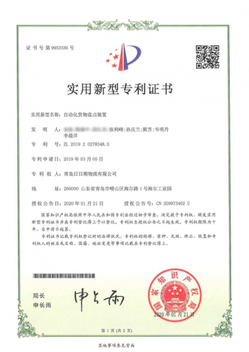 2020年初,國家專利局正式發(fā)出授權(quán)通知,日日順物流創(chuàng)客訓(xùn)練營再獲認可,北京交通大學(xué)、安徽大學(xué)、西安科技大學(xué)等高校創(chuàng)客參與輸出的“用于智能倉儲的無人卸貨車”、“自動化裝卸集裝箱”、“自動化貨物盤點裝置”等8項創(chuàng)業(yè)創(chuàng)新成果獲得國家專利證書。
