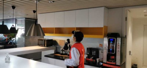 一天內,兩座寫字樓,十個樓層,累計 9357.37 ㎡辦公區、825 ㎡食堂、14 輛汽車的全面消毒全部完成;48個小時內,10余套無感測溫監控系統運抵四川電信省內各地重點分公司并完成安裝部署……覆蓋商品設備配置、設備調試安裝、上門消毒等線上線下一體化的數字化服務,確保了企業安全防護措施落實到位。