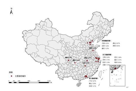 2019年全國重要城市節點分布情況
