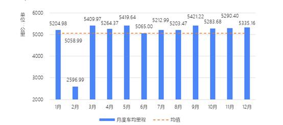 2019年全國貨運車輛月度車均里程變化情況