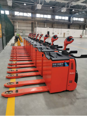 在南航航材倉庫區,為了滿足短、頻、快的維修節奏,使用林德電動托盤堆垛車L14AP及林德電動前移式叉車R14S,均配備林德鋰電池,一小時快速充電,隨充隨用,充電效率高達90%以上,大大提升了電能的利用率,滿足多班作業需求。L14AP采用2.3kW交流驅動電機,同時配置高強度的材料,提供較高的承載能力,使用壽命更長。R14S采用交流免維護電機、林德電子助力轉向、林德載荷控制,精心設計的布局讓人機完美結合,使貨物操作精確、安全,作業效率高。