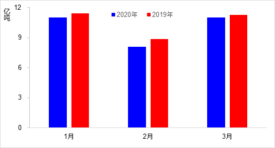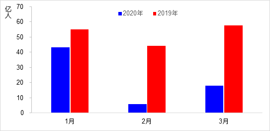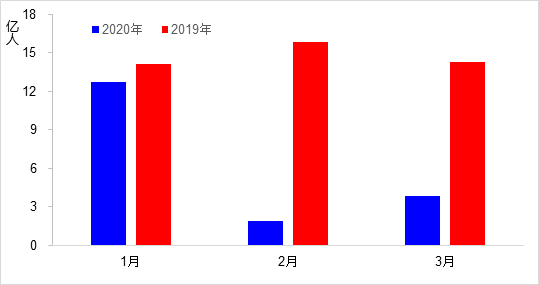 一季度,完成營業(yè)性客運量18.5億人,同比下降58.4%,其中3月下降73.0%,降幅較2月收窄15.2個百分點。分方式看,公路客運量下降59.4%、水路客運量下降61.4%。