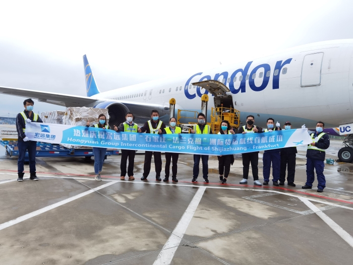 在這樣一個(gè)特殊時(shí)期,宏遠(yuǎn)控股自知使命,勇?lián)?zé)任,受德國駐華大使館委托,與德國神鷹航空緊密合作,開辟了石家莊至法蘭克福的洲際貨運(yùn)航線。5月8日,一架由北京宏遠(yuǎn)控股集團(tuán)運(yùn)營、德國神鷹航空執(zhí)飛的波音767-300ER航班順利開航。