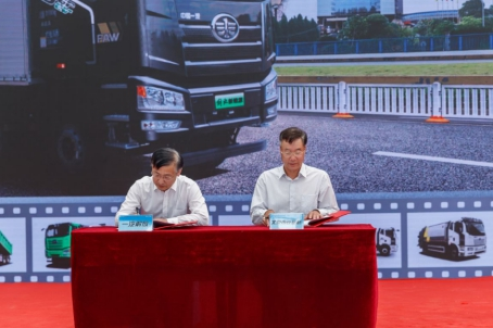 一汽解放汽車銷售有限公司副總經(jīng)理胡曉冬與北京市政路橋建材集團黨委書記、董事長劉振成簽署戰(zhàn)略合作協(xié)議