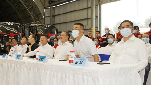 一汽解放集團股份有限公司總經(jīng)理朱啟昕與北京市政路橋集團黨委副書記、總經(jīng)理王健中共同為祥獅點睛