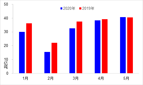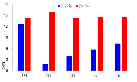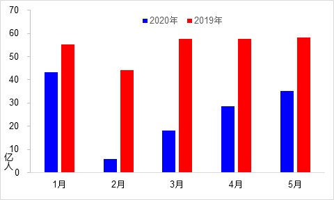 1-5月,完成營業(yè)性客運量31.6億人,同比下降56.9%。其中,公路營業(yè)性客運量下降57.3%、水路客運量下降59.0%。