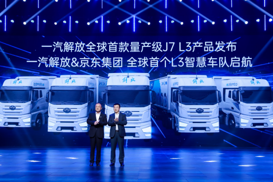 大會(huì)現(xiàn)場(chǎng),朱啟昕向京東物流自動(dòng)駕駛首席科學(xué)家、智能駕駛總經(jīng)理孔旗交付了首批J7 L3智能車隊(duì),共同開啟全新智慧物流合作新模式。這是中國商用車行業(yè)首個(gè)智能車隊(duì),它的成功交付,證明了解放的智能駕駛技術(shù)已經(jīng)全面領(lǐng)先行業(yè)。同時(shí),作為第一個(gè)商用化的智能車隊(duì),這也是解放智慧戰(zhàn)略轉(zhuǎn)型中的一次大膽嘗試。