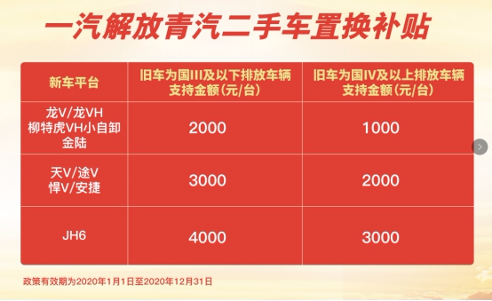 不僅如此,為助力用戶節油、省錢、增收,一汽解放青汽積極響應政府號召,特別推出國三置換惠民政策,在政府補貼基礎上,實施多款車型置換優惠補貼,用戶購置一汽解放青汽指定車型,可享單臺最高4000元補貼。通過提供發放補貼形式,最大程度降低用戶購車成本,幫助用戶減輕購車、換車、用車帶來的經濟壓力。