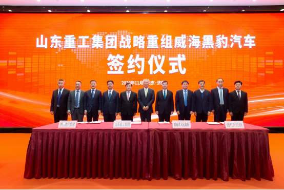 11月10日上午,山東重工集團戰略重組威海黑豹汽車簽約儀式在山東濟南舉行。山東重工集團、中國重汽集團與威海市政府、文登區政府簽署四方協議。中國工程院院士、山東省副省長凌文及省國資委、省工信廳、威海市、文登區相關領導出席活動。