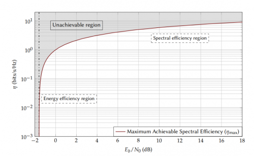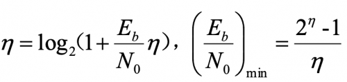 C為傳輸速率,B為傳輸帶寬,η=C/B,為頻譜效率,