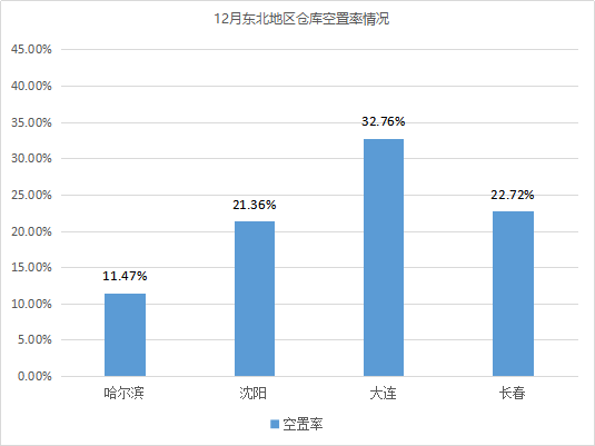 倉庫空置率較高的城市為大連、重慶,均高于25%。相較11月,大連和重慶倉庫空置率相對穩定,波動不大。本月,大連金普新區物流中心(11.36萬㎡)投入市場使用。