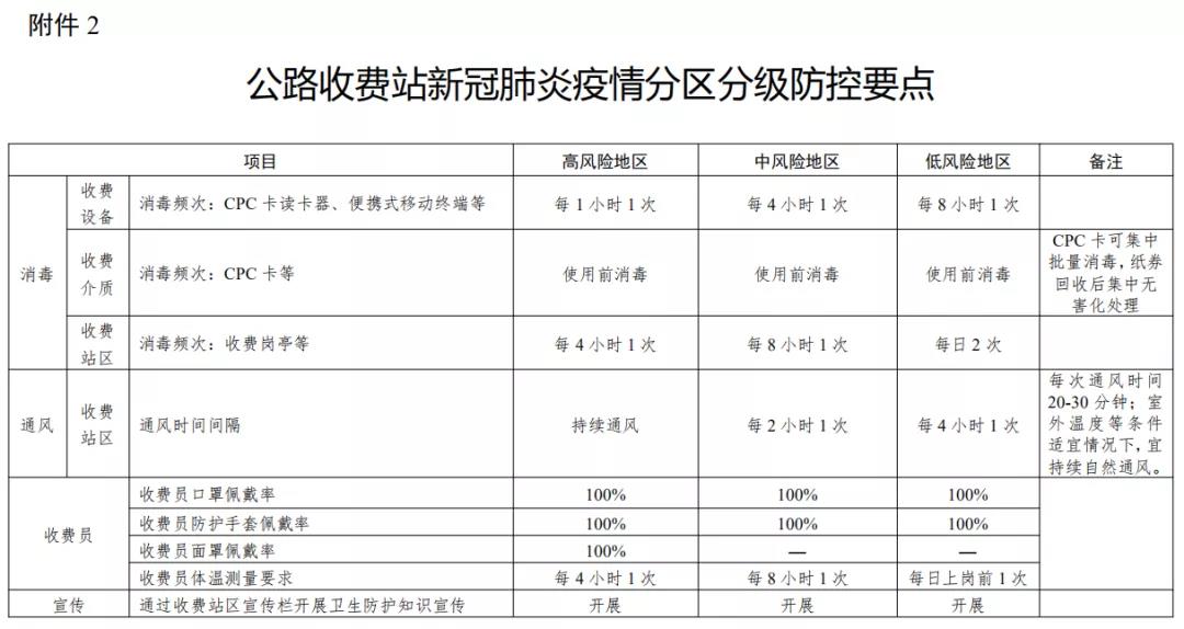 在省級聯防聯控機制領導下,各省級交通運輸主管部門應指導公路管理機構、收費公路和服務區(qū)經營管理單位,切實落實疫情防控主體責任,完善工作方案,細化應急預案,加強運營管理,扎實做好公路服務區(qū)和收費站疫情防控工作。