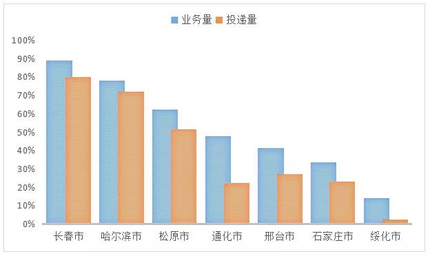 部分城市近期快遞業(yè)務(wù)量、投遞量變化趨勢(shì)