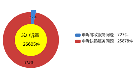 用戶對快遞服務問題申訴25878件,環比增長43.7%,同比增長65.4%。