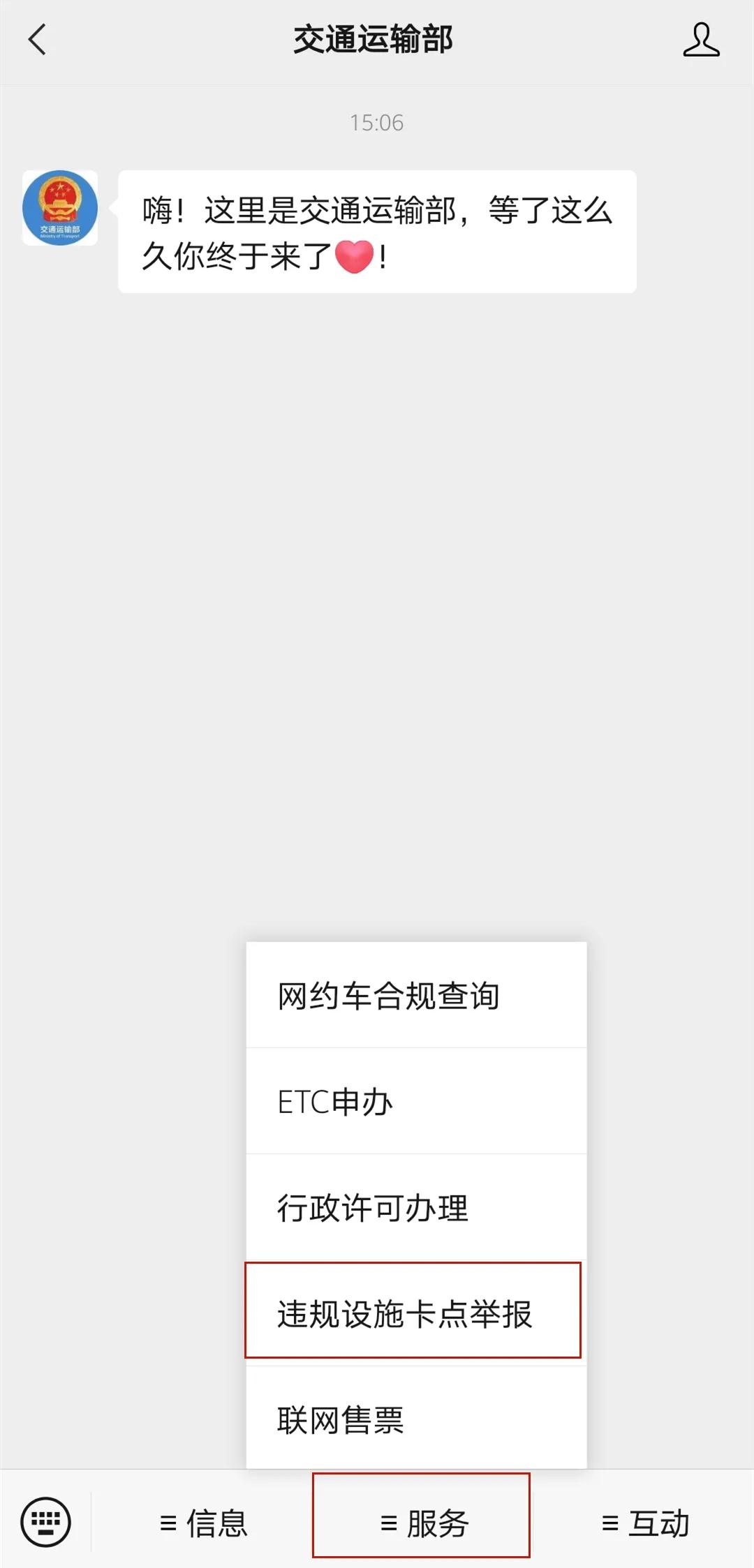 第一步:掃面下方二維碼關注交通運輸部官方微信公眾號;