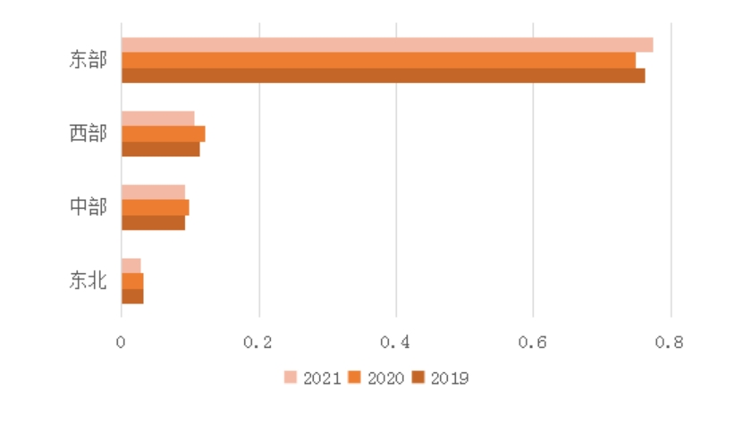 圖 2 中小企業(yè)數(shù)字化采購地域分布:成交額占比